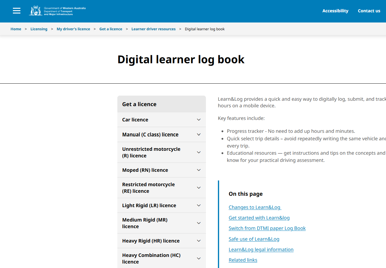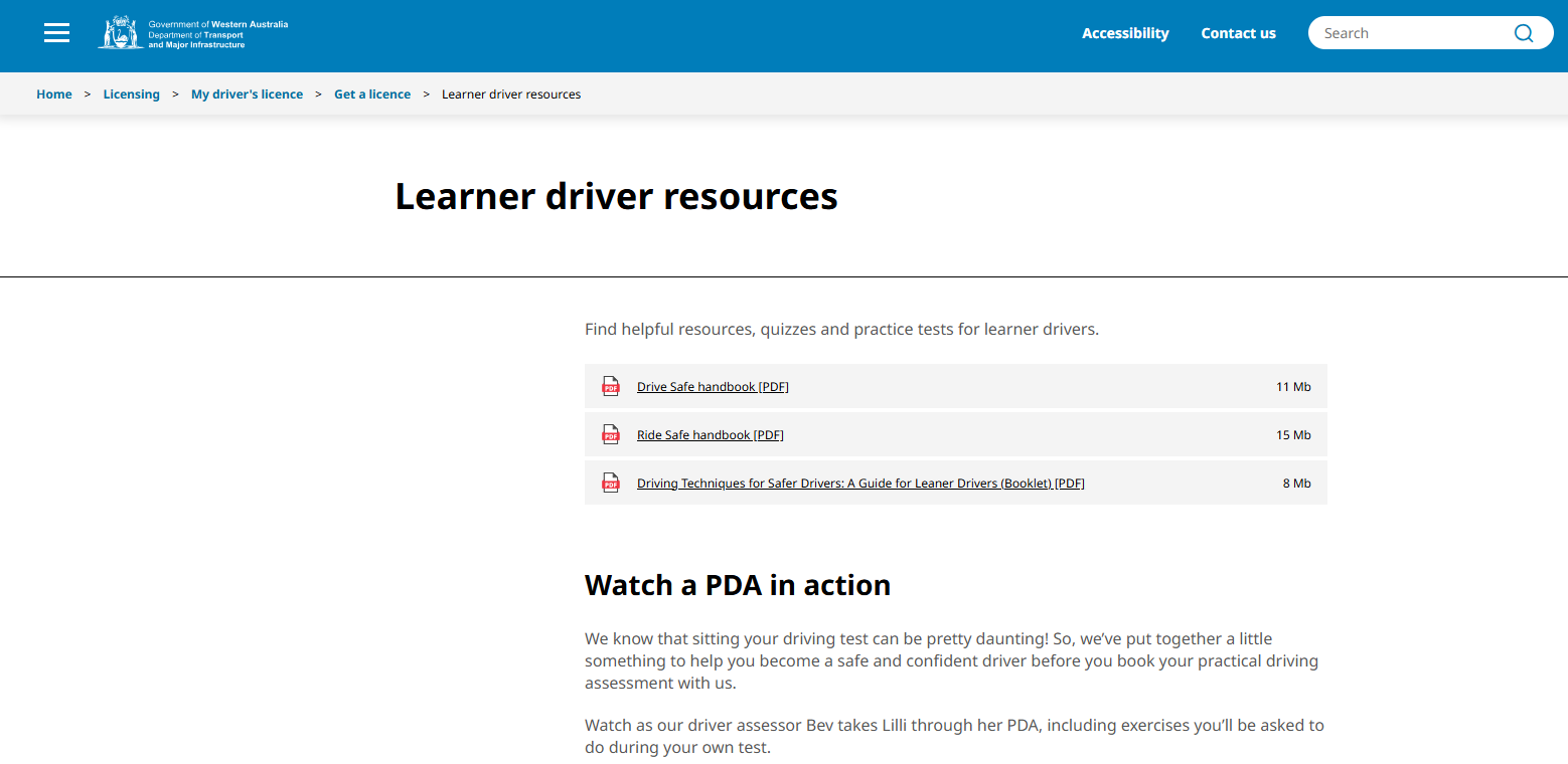 Information for learner drivers from the Department of Transport and Major Infrastructure, including the Drive Safe handbook.
