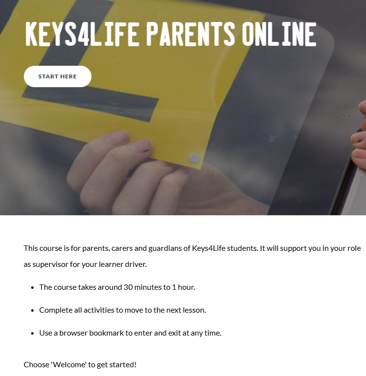 This is an online self-paced course which supports parents, carers and guardians in their role as a supervisor for their Keys4Life learner driver.
